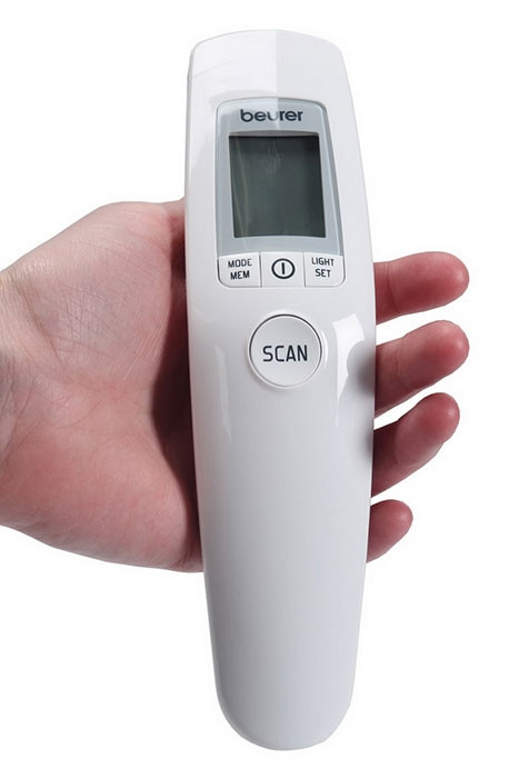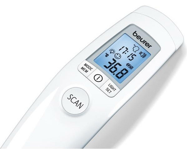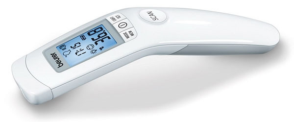 دماسنج طبی بیورر BEURER مدل FT90 وسیله ای شیک و پیشرفته مجهز به سنسور مادون قرمز است که بسیار سریع و آسان و بدون تماس با بدن یا جسم مورد نظر دمای آن را اندازه گیری کرده و نمایش می دهد. این دستگاه مناسب مصارف خانگی بوده و برای اندازه گیری دمای پیشانی، اجسام و محیط کاربرد دارد. محدوده دمای قابل اندازه گیری توسط دستگاه برای پیشانی از 34 تا 42.2 و برای اجسام از 22- تا 80 درجه سانتیگراد با دقت 0.2-0.3 درجه ای می باشد. به دلیل اندازه گیری غیر تماسی این وسیله بسیار ایمن و بهداشتی بوده و حتی می توان برای اندازه گیری دمای شیر یا غذای کودکان و یا آب حمام نیز مورد استفاده قرار داد. در ضمن منبع تغذیه دستگاه دو باتری نیم قلمی 1.5 ولت بوده که همراه با آن ارائه شده است و جهت صرفه جویی در مصرف باتری دستگاه مجهز به سیستم خاموشی خودکار می باشد.