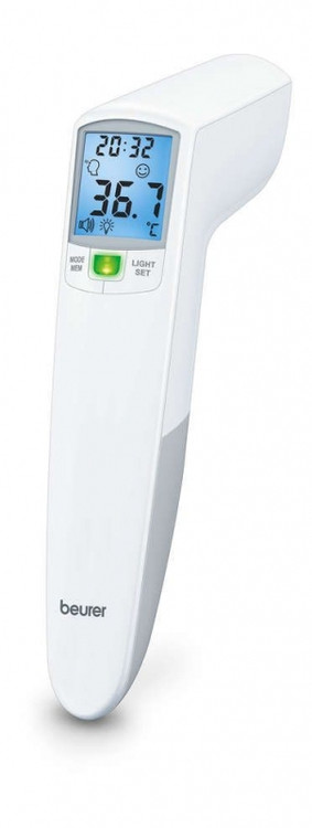 کمپانی آلمانی Beurer که از سال 1919 در امر تولید تجهیزات پزشکی سابقه دارد، نمونه های مختلفی از تب سنجهای دیجیتال را به بازار عرضه کرده است. تب سنج دیجیتال بیورر مدل FT100 قابلیت سنجش دمای بدن، دمای محیط و دمای سطح را دارد. برای این تب سنج سنسور فاصله تعبیه شده تا بدون نیاز به تماس، بتوانید دمای بدن افراد به خصوص نوزادان و کودکان را اندازه گیری کنید. این تب سنج دمای بدن را با چراغ LED به شما هشدار می دهد. بدین صورت که تا دمای 37.9 درجه را با چراغ سبز و دمای بالای 38 درجه را با چراغ قرمز نشان می دهد. سیستم اندازه گیری دمای این تب سنج با مادون قرمز بوده و سریعا دما را اندازه گیری کرده و پس از اندازه گیری به شما هشدار صوتی می دهد. تب سنج دیجیتال بیورر مدل FT100 دما را به صورت فارنهایت و سانتی گراد نشان می دهد. این تب سنج دما را از فاصله ی 4 تا 6 سانتی متری اندازه گیری می کند. این محصول همچنین دارای 60 جایگاه حافظه می باشد که می توانید دمای بدن را ذخیره کنید. تب سنج دیجیتال بیورر مدل FT100 دارای نمایشگر بزرگ و خوانا با نور آبی است که به راحتی می توانید دمای اندازه گیری شده را مشاهده کنید. از دیگر قابلیت های این دستگاه می توان به خاموشی خودکار، کنترل صدا و دقت بالا اشاره کرد. منبع تغذیه این دستگاه دو عدد باتری 1.5 ولتی است که به هنگام خریداری به همراه یک کیف در اختیار شما قرار می گیرند. دقت اندازه گیری این تب سنج برای پیشانی تا 0.2 سانتی گراد و در محدوده های دیگر 0.3 سانتی گراد می باشد.