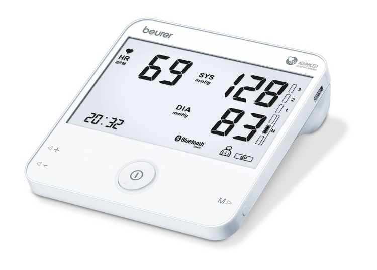 فشار سنج بازویی بیورر Beurer مدلBM 95 دارای حافظه ۲*۶۰ می باشد. فشارسنج بیورر BM 95 مجهز به سیستم تشخیص زود هنگام بی نظمی ضربان قلب یا همان عارضه آریتمی می باشد. این محصول دارای نمایشگر LCD بزرگ و خوانا و دکمه لمسی با نور آبی می باشد.. فشار سنج بیورر BM 95 دارای انتقال داده ها از طریق بلوتوث به گوشی های هوشمند بوده و همچنین دارای کابل USB می باشد.